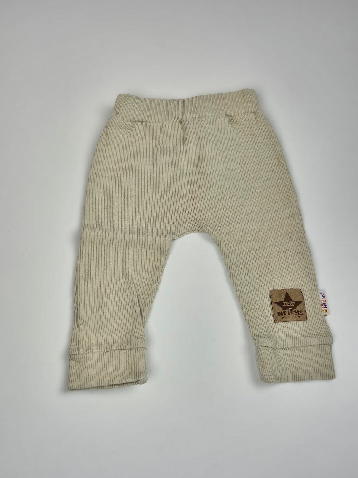 Pohodlné žebrované legíny značky Baby Nellys v jemném béžovém až smetanovém odstínu, který krásně zapadne do neutrálního šatníku miminka. Měkký, pružný materiál s elastickým pasem se dobře přizpůsobí a nikde netlačí. Ohrnovací lemy na nohavicích umožní přizpůsobit délku podle potřeby a prodlouží využití. Na nohavici je decentní nášivka Baby Nellys, která dodává legínám stylový detail. Ideální kousek na každodenní nošení doma, do kočárku i na procházky.