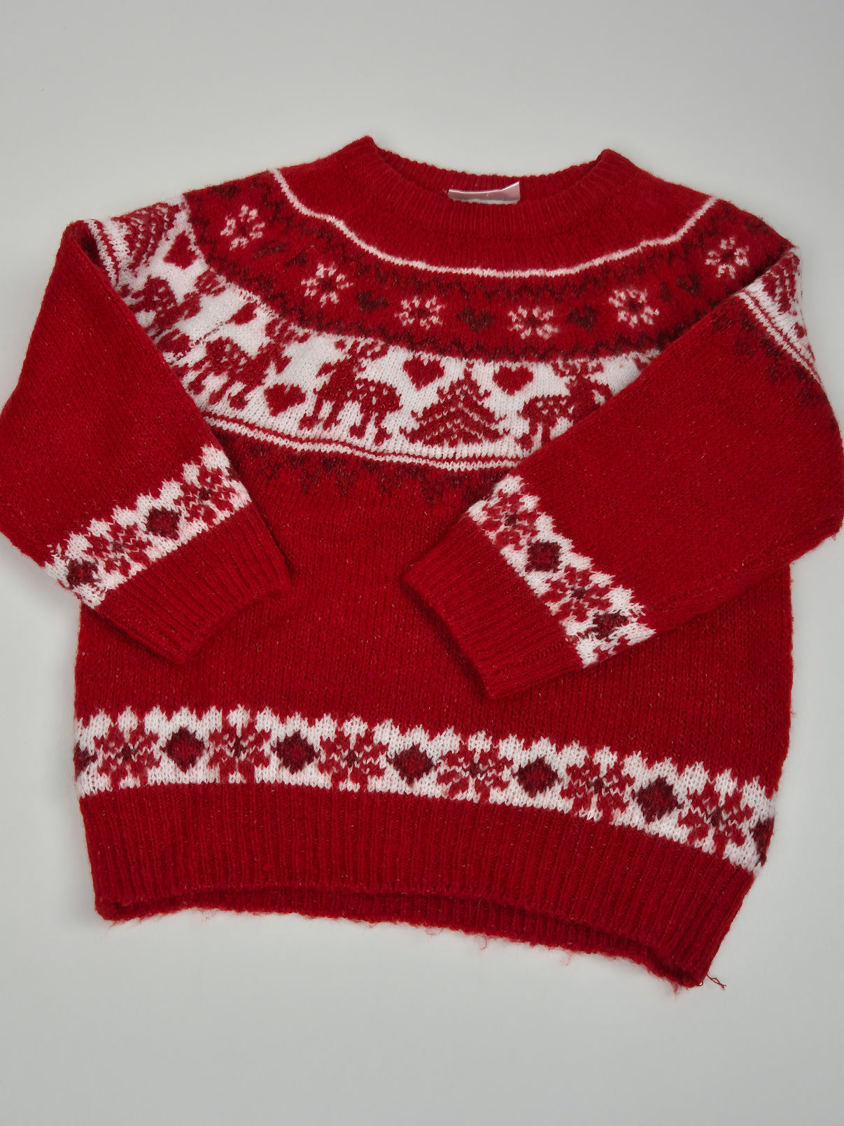 Měkoučký vánoční svetr Pepco v červené barvě s bílým a vínovým vzorem sobíků a srdíček. Hřejivý úplet zaručí pohodlí a styl, ať už pod stromečkem nebo při zimních procházkách. Skvělý kousek pro malé vánoční nadšence.
