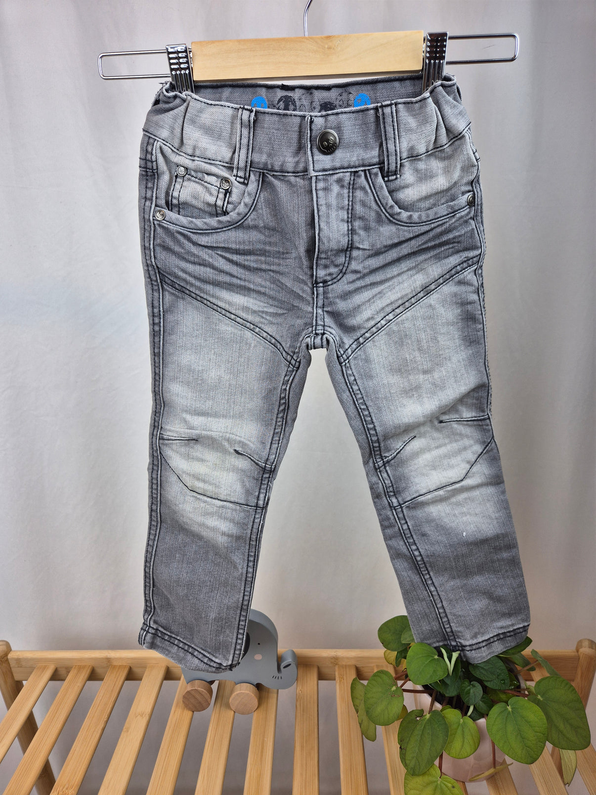 Stylové dětské džíny značky Dopodopo v šedém denimovém provedení s výrazným opraným efektem. Praktický střih s pohodlným pasem na gumu a zapínáním na knoflík doplňují ozdobné švy a detailní prošití v motorkářském stylu. Vhodné na každodenní nošení do školky, školy nebo na výlety.