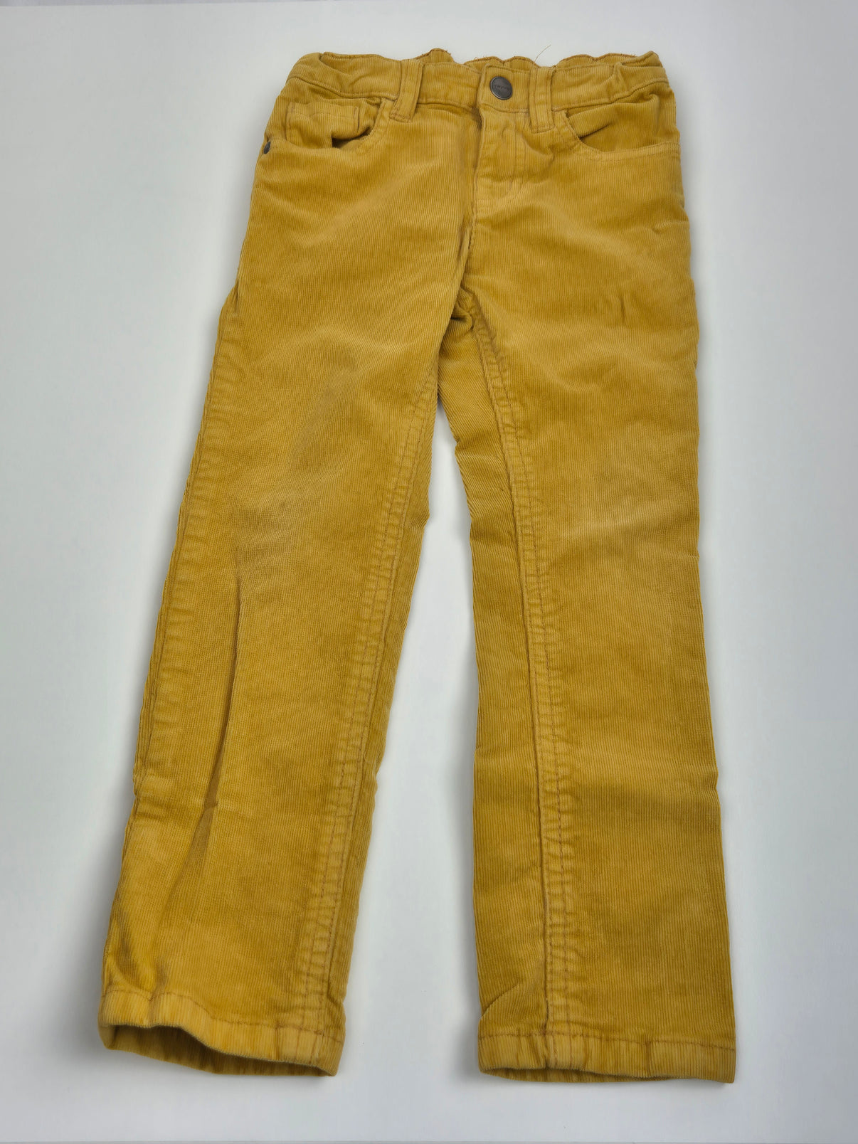Stylové manšestrové kalhoty v teplém hořčicově žlutém odstínu, který krásně oživí dětský šatník. Jemný manšestr dodává kalhotám příjemně hřejivý pocit a lehce elegantní vzhled. Klasický střih s kapsami a zapínáním na knoflík se hodí jak na běžné nošení, tak i na slavnostnější příležitosti – do školy, na návštěvu i na rodinné akce. Barva se skvěle kombinuje s neutrálními i tmavšími tóny.