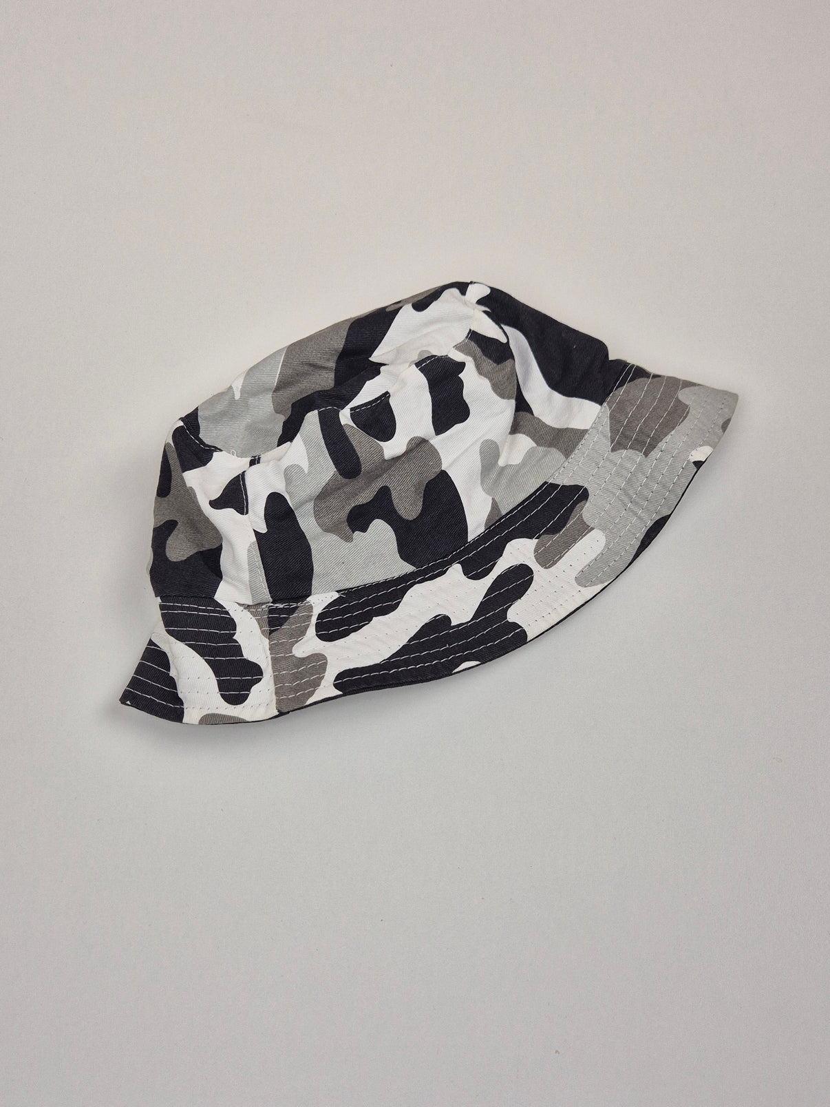 Lehký letní klobouk v maskáčovém vzoru v kombinaci šedé, bílé a černé barvy. Praktický střih s širší krempou dobře chrání hlavu i obličej před sluncem a je ideální na léto – na hřiště, dovolenou i běžné venkovní nošení. Bavlněný materiál je příjemný, prodyšný a pohodlný i při teplejším počasí. Univerzální design se hodí ke klučičím i neutrálním outfitům.