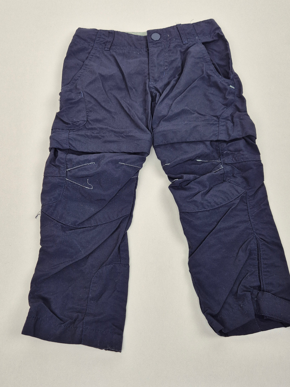 Praktické outdoorové kalhoty Quechua v tmavě modré barvě, ideální na výlety, turistiku i každodenní dobrodružství. Materiál je lehký, odolný a příjemný na pohyb. Hlavním benefitem jsou odepínací nohavice, díky kterým se kalhoty během chvilky promění v pohodlné kraťasy – perfektní na proměnlivé počasí. Nechybí boční kapsy a pohodlný střih vhodný hlavně pro kluka, ale snadno je unosí i nadšená malá turistka.