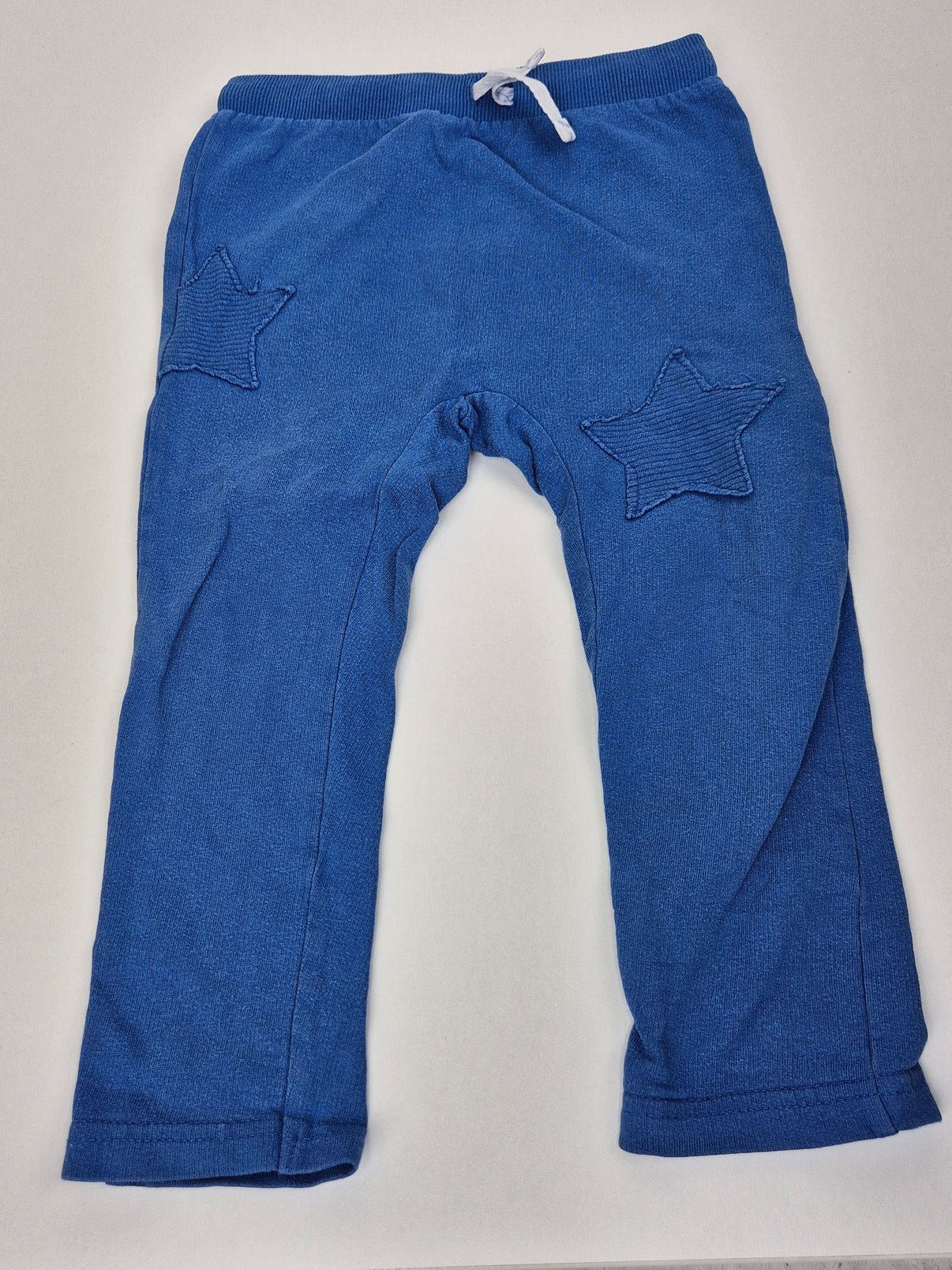 Jsou z měkké teplákoviny v modré barvě, mají elastický pas se šňůrkou na utažení a jako ozdobu dvě hvězdičky.