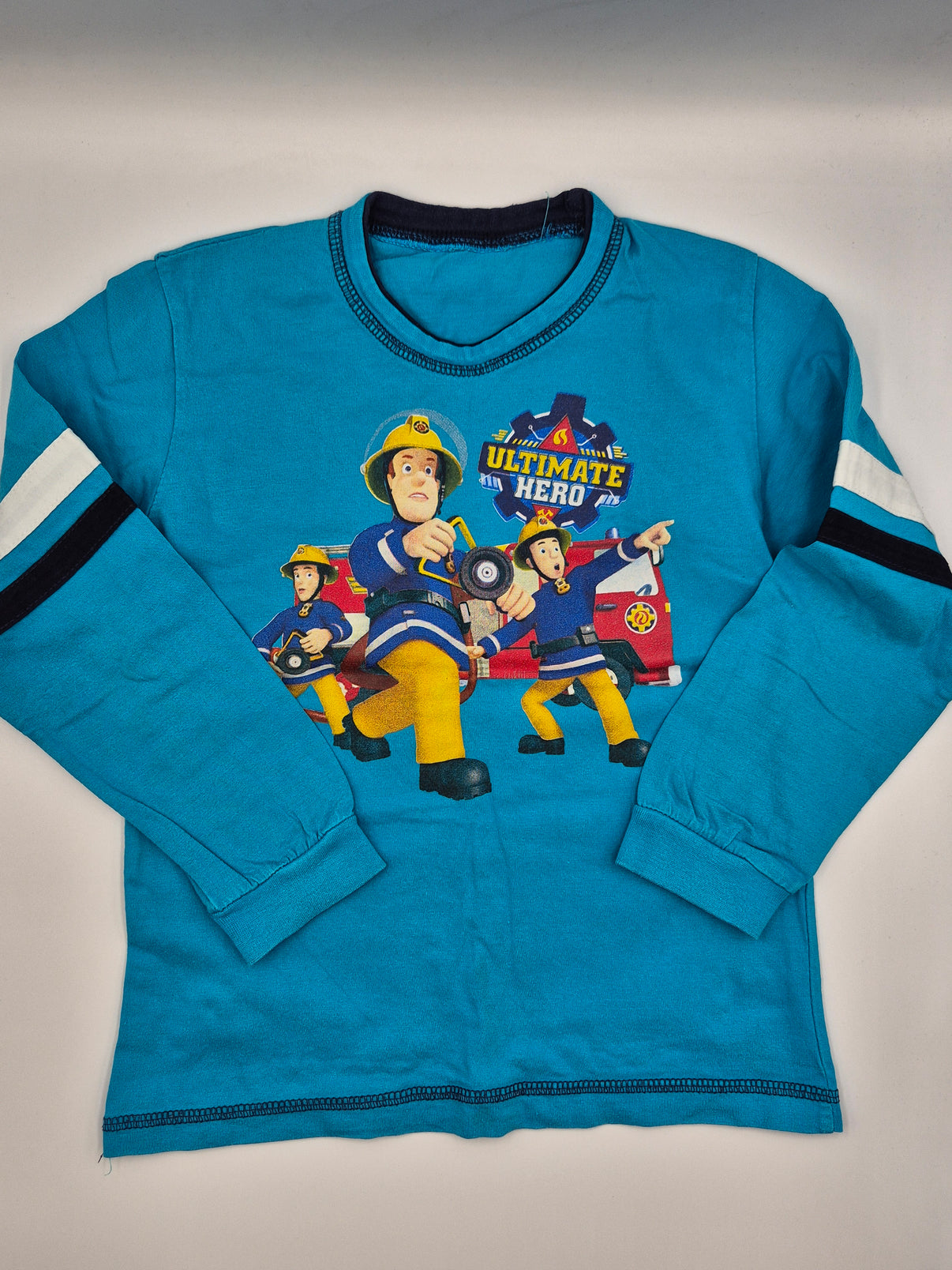 Dětské tričko s dlouhým rukávem Hasič Sam v výrazné tyrkysově modré barvě, které potěší všechny malé fanoušky tohoto oblíbeného hrdiny.