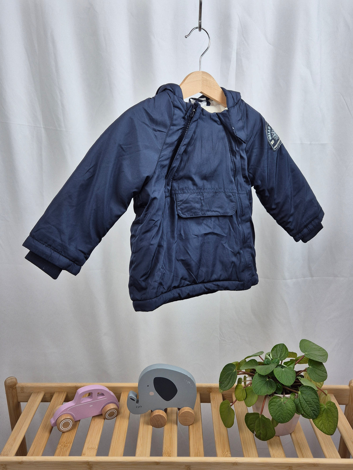 Tmavě modrá bunda od Pepco s hřejivým vnitřním chloupkem je skvělým parťákem na zimní a chladné podzimní dny. Praktické zapínání na bok a velká kapsa na přední straně dodávají bundě originální vzhled, zatímco kapuce a měkoučká podšívka zaručí teplo a pohodlí. Rukávy jsou zakončené náplety, které lépe drží a chrání před chladem.