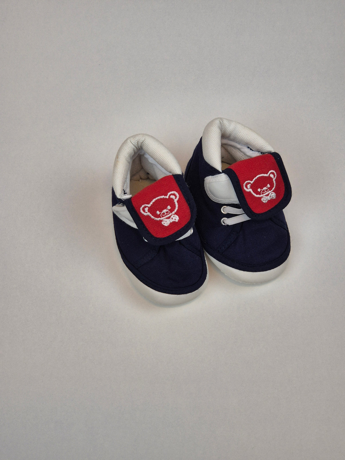 Měkkoučké capáčky do kočárku značky Gemini v námořnické modré s výrazným červeným zapínáním na suchý zip zdobeným medvídkem. Vnitřek je příjemně podšitý a ideální do chladnějších dnů. Praktické zapínání usnadňuje obouvání a dobře drží na nožce. Skvělé pro malé kluky na procházky v kočárku ve velikosti 62/68.