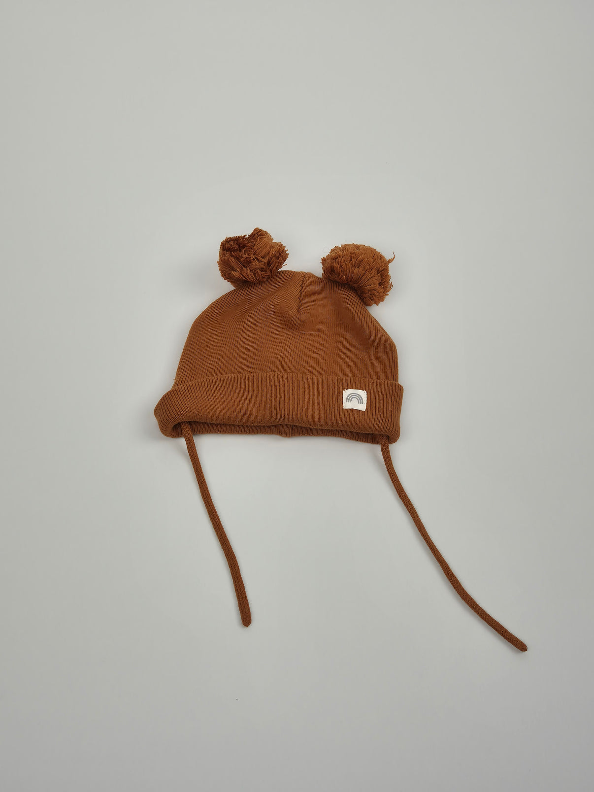 Roztomilá hnědá čepička značky Lindex ve velikosti 56/62 (pro obvod hlavy 40–42 cm) je ideální pro miminka ve věku kolem 2–4 měsíců. Díky dvěma bambulkám připomíná medvídka a působí hravě a něžně. Měkký žebrovaný materiál je příjemný k dětské pokožce a zavazování pod bradou zajistí, že čepice perfektně drží na místě. Stylový kousek na chladnější dny do kočárku i na první podzimní výlety.