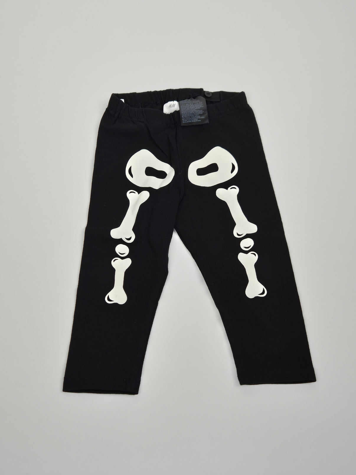 Zábavné dětské legíny H&M v černé barvě s kontrastním bílým potiskem kostí na nohavicích – ideální na Halloween, karneval nebo jen tak pro radost. Pružný pas a pohodlný střih zaručují volnost pohybu při každém dobrodružství. Vyrobené z příjemného bavlněného materiálu, který je hebký k dětské pokožce. Skvělý unisex kousek pro malé rošťáky se smyslem pro humor.