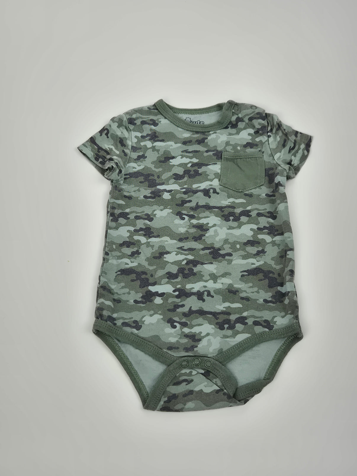 Chlapecké body s krátkým rukávem od značky Pepco v oblíbeném maskáčovém vzoru je skvělou volbou pro malé rošťáky. V odstínech zelené, khaki a černé působí stylově a díky malé kapsičce na hrudi získává hravý detail. Pohodlný střih a zapínání mezi nožkami zajišťují snadné oblékání i přebalování. Ideální na každodenní nošení, výlety nebo dovádění na hřišti.