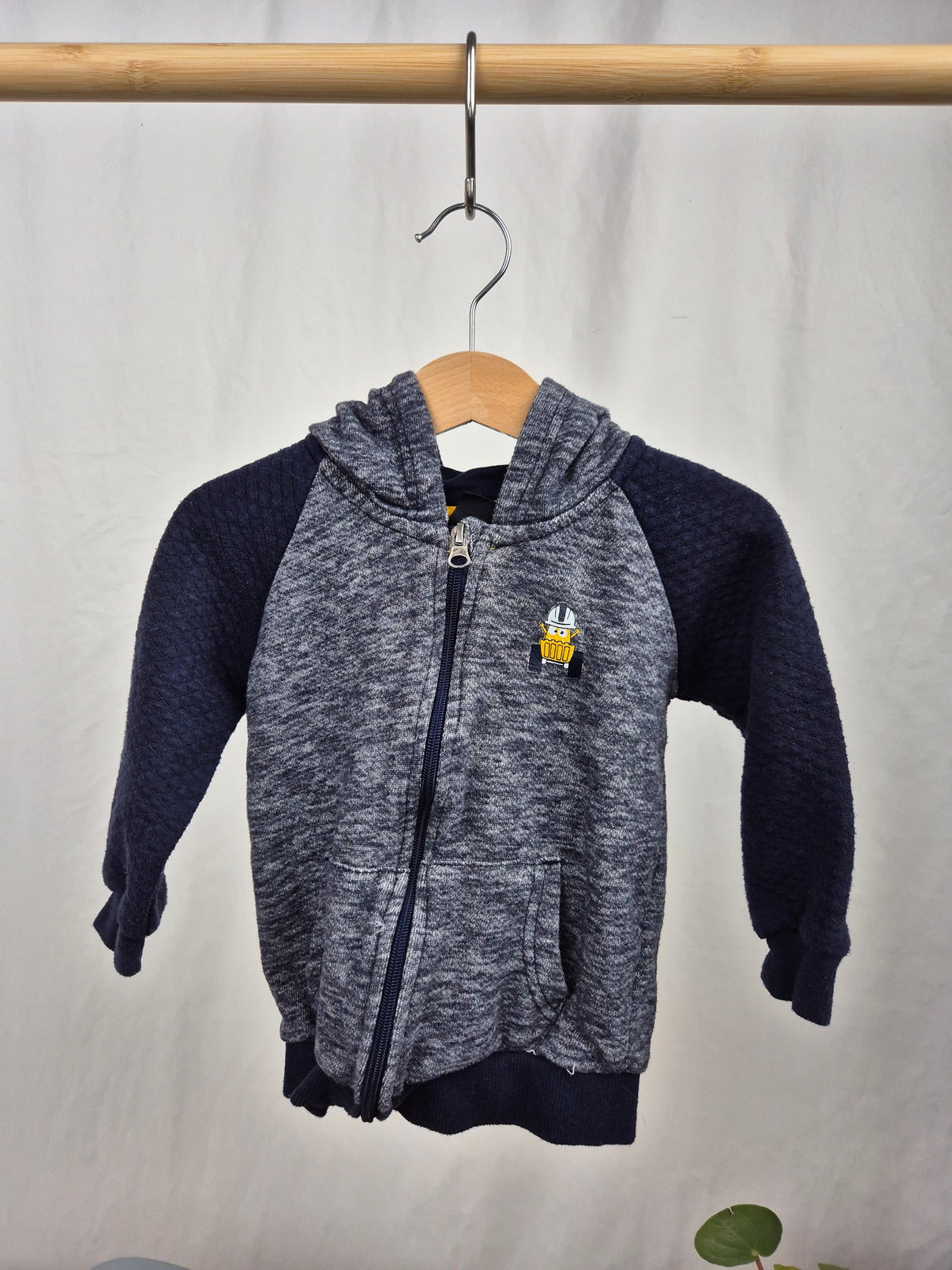 Stylová chlapecká mikina s kapucí od značky Kiki&Koko v kombinaci tmavě šedé a námořnicky modré barvy je jako stvořená na dobrodružství venku i na pohodové dny ve školce. Rukávy mají jemný strukturovaný vzor, který mikině dodává moderní šmrnc. Výšivka žlutého bagru s ochrannou helmou na hrudi potěší každého malého fanouška stavebních strojů. Praktické kapsy a zip usnadní oblékání a zajistí pohodlí během celého dne. Skvělá volba pro malé objevitele!