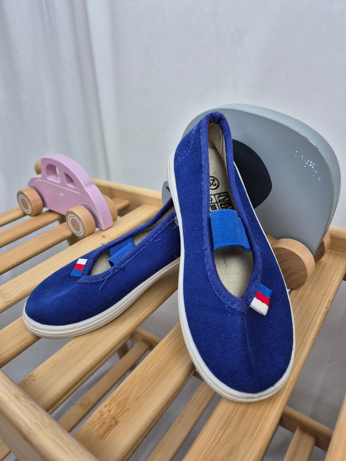 Klasické modré dětské cvičky s pružným nártem a jednoduchým nazouváním, ideální do školy, školky nebo na kroužky. Textilní svršek je prodyšný a pohodlný, světlá podrážka neklouže a nezanechává stopy –...