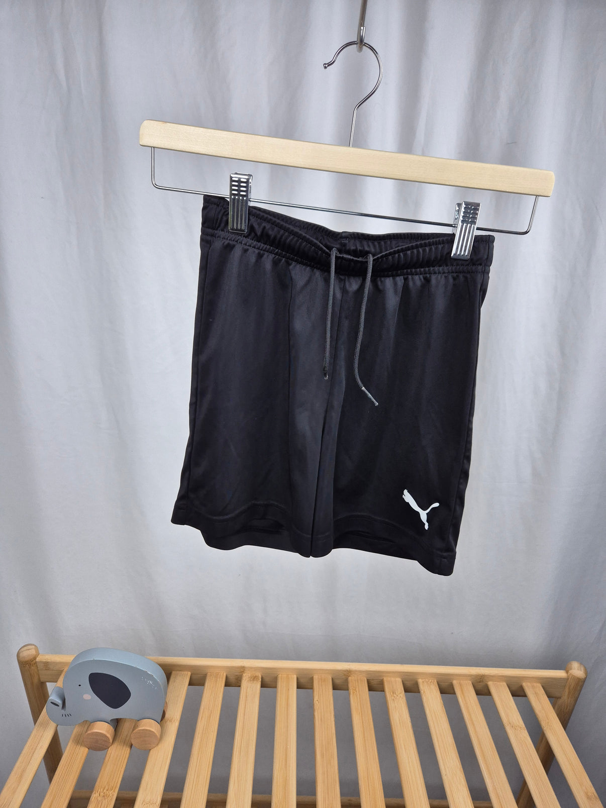 Lehké chlapecké sportovní kraťasy Puma ve velikosti 134/140 v klasické černé barvě s decentním bílým logem značky na nohavici. Vyrobené z funkčního materiálu DryCELL, který odvádí vlhkost a udržuje tělo v suchu i při aktivním pohybu. Kraťasy mají elastický pas se stahovací šňůrkou a jsou ideální na sport, tělocvik i volný čas.