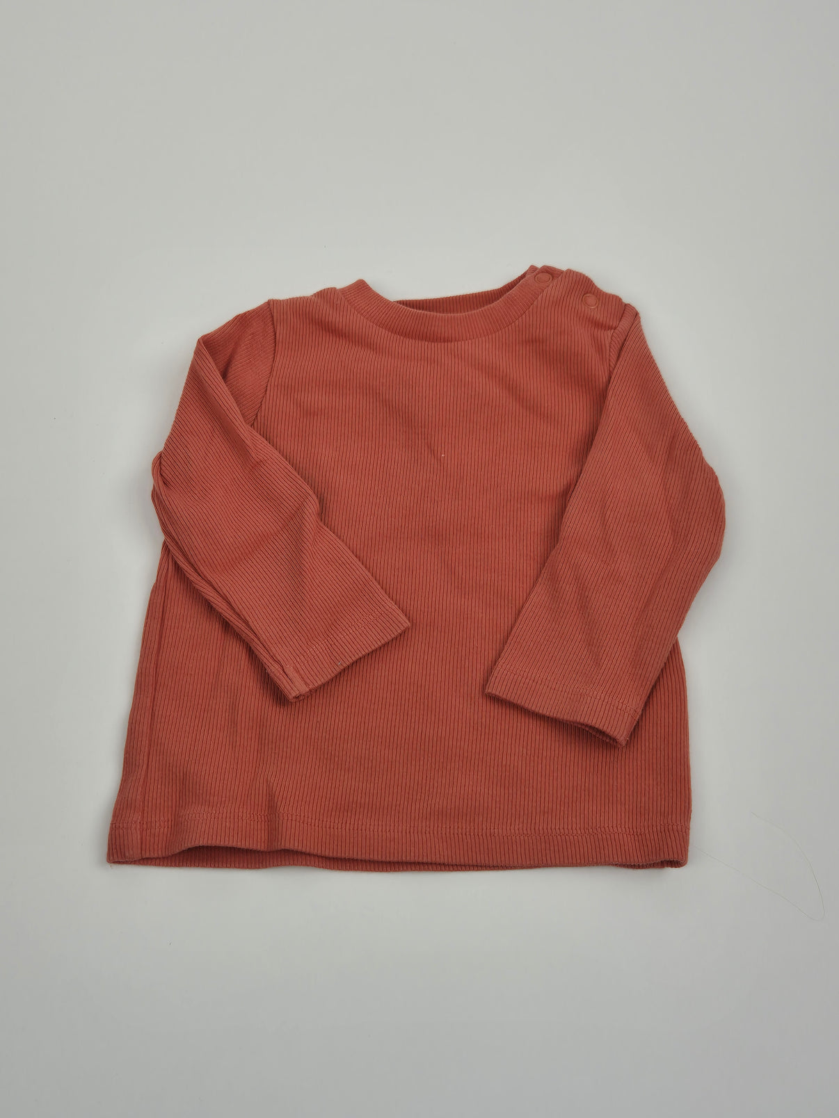 Jednoduché a zároveň stylové tričko značky F&F v příjemném cihlově červeném odstínu. Vyrobené z žebrované bavlny, která je měkká, pružná a pohodlná pro celodenní nošení. Praktické zapínání na rameni usnadní oblékání i svlékání. Skvělý základní kousek do šatníku pro holčičky i kluky – hodí se do školky, na návštěvu i na domácí pohodu.