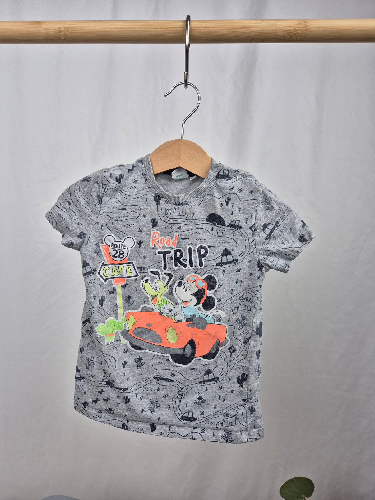 Pohodlné chlapecké tričko ve velikosti 92 s oblíbeným motivem Mickey Mouse a Pluta potěší každého malého fanouška dobrodružství. Šedý podklad s jemným potiskem silnic a kempování doplňuje výrazný obrázek, který vyzývá k výletům – "Road Trip" na Route 28. Ideální volba na výlety, školku i každodenní nošení. Měkký materiál zajistí komfort po celý den.