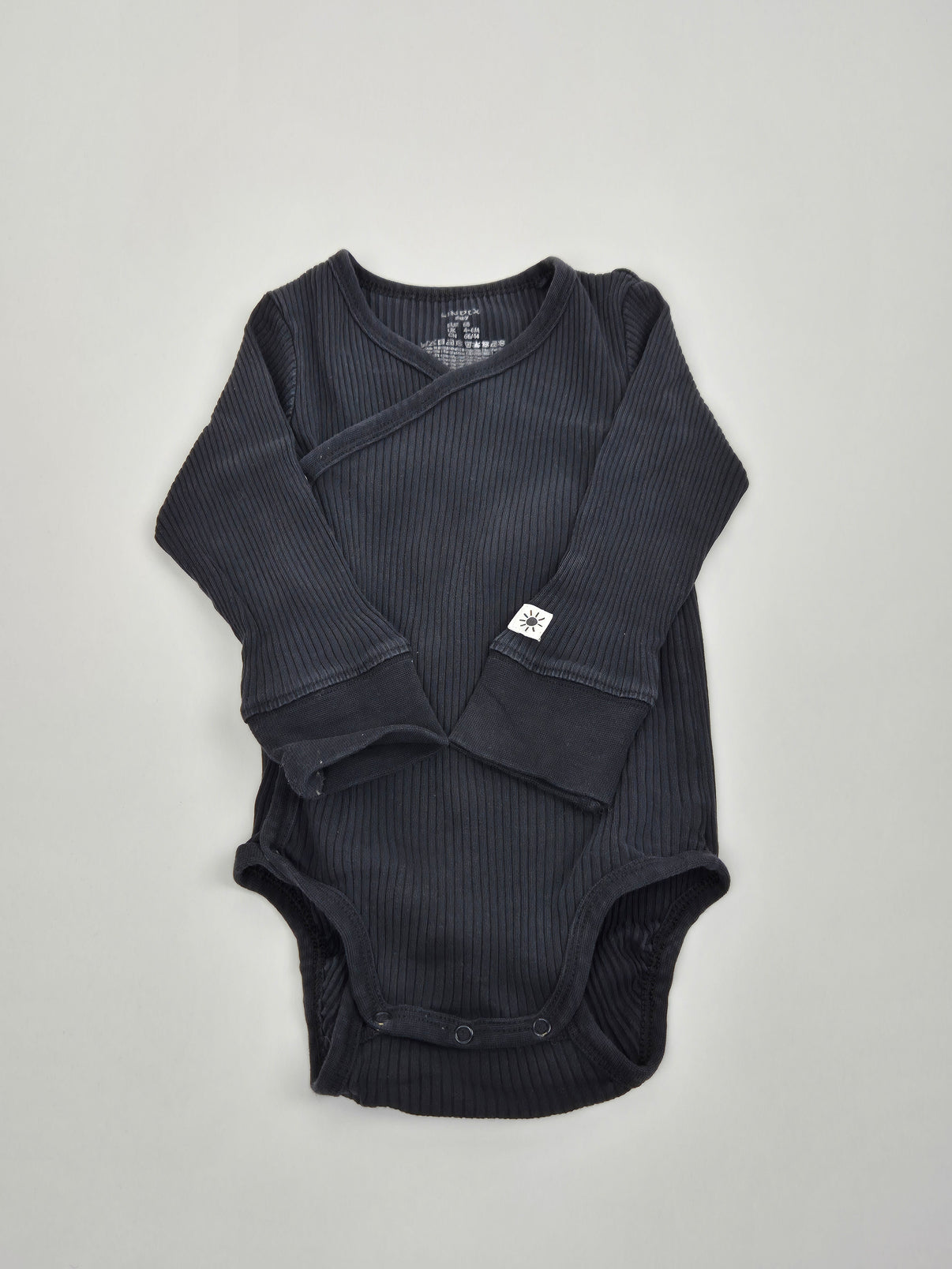 Stylové zavinovací body Lindex v tmavě námořnické modré barvě z hebkého žebrovaného materiálu, který je příjemný na dotek a skvěle padne. Praktické zapínání na patentky na boku a mezi nožičkami usnadní oblékání i přebalování – ideální volba pro novorozence i menší kojence. Dlouhé rukávy s náplety, které lze přetáhnout přes ručičky. Univerzální kousek vhodný pro kluky i holky, skvělý na doma i pod oblečení na ven.