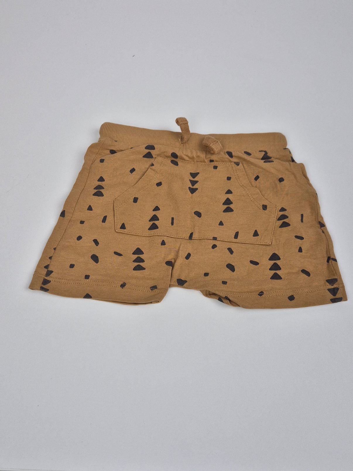 Pohodlné kraťasy Pepco v teplákovém stylu, ideální na letní dny i domácí pohodu. Mají příjemný elastický pas se šňůrkou a praktickou kapsu na přední straně. Základní hnědá barva s černým geometrickým vzorem působí hravě, ale stále univerzálně. Vyrobené z měkké bavlny.