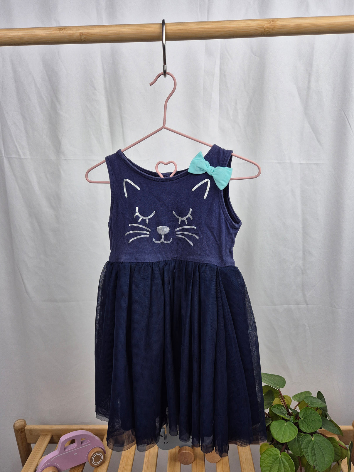 Tyto krásné dívčí šaty bez rukávů od značky Kiki&Koko jsou jako stvořené pro malé milovnice elegance a hravého stylu. Horní část zdobí roztomilý potisk kočičího obličeje s třpytivými detaily a sladkou tyrkysovou mašličkou na rameni. Sukně je z jemného tylu, který dodává šatům kouzelný nadýchaný efekt. Skvělé na slavnostní příležitosti, narozeninové oslavy nebo jen tak na parádu!