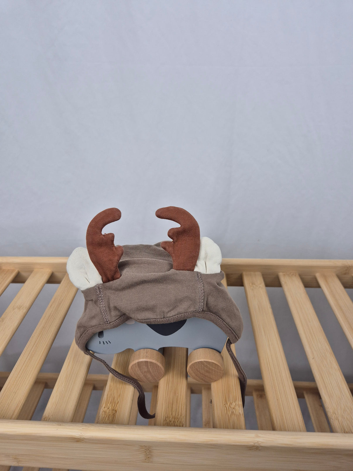 Roztomilá zimní čepička od značky Lindex v hnědém odstínu s oušky a plyšovými parožím promění každé miminko v malého sobíka. Ušitá z měkkého bavlněného materiálu, který je příjemný k dětské pokožce, a se zavazováním pod bradou, aby dobře držela i při zimních radovánkách. Ideální na focení, vánoční období i každodenní procházky v chladnějším počasí.