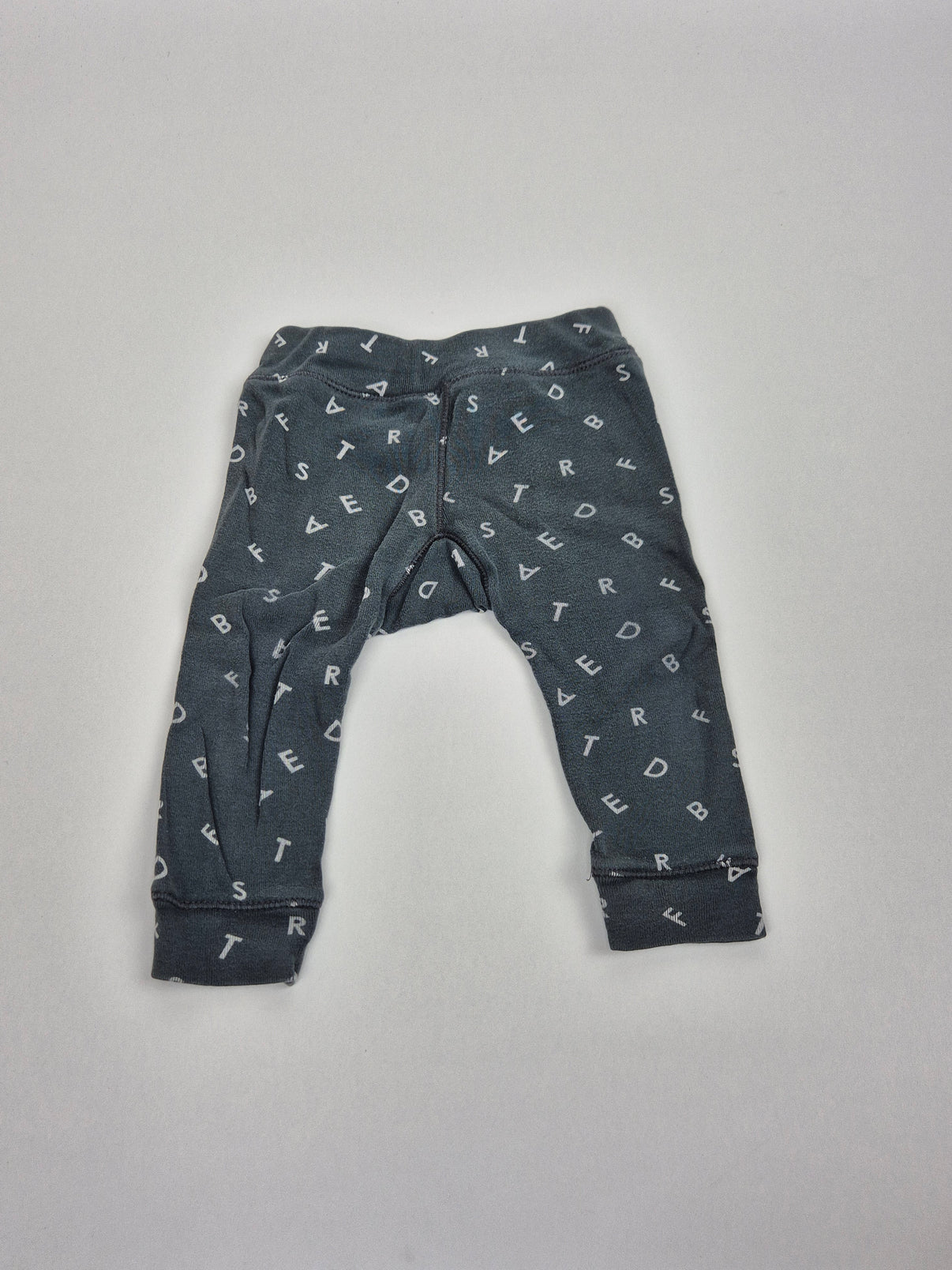 Tmavě zelené kojenecké legínky s celoplošným potiskem bílých písmenek jsou ideální volbou na každodenní nošení doma i venku. Příjemný a pružný materiál poskytuje maximální pohodlí, zatímco měkký pas usnadní převlékání.