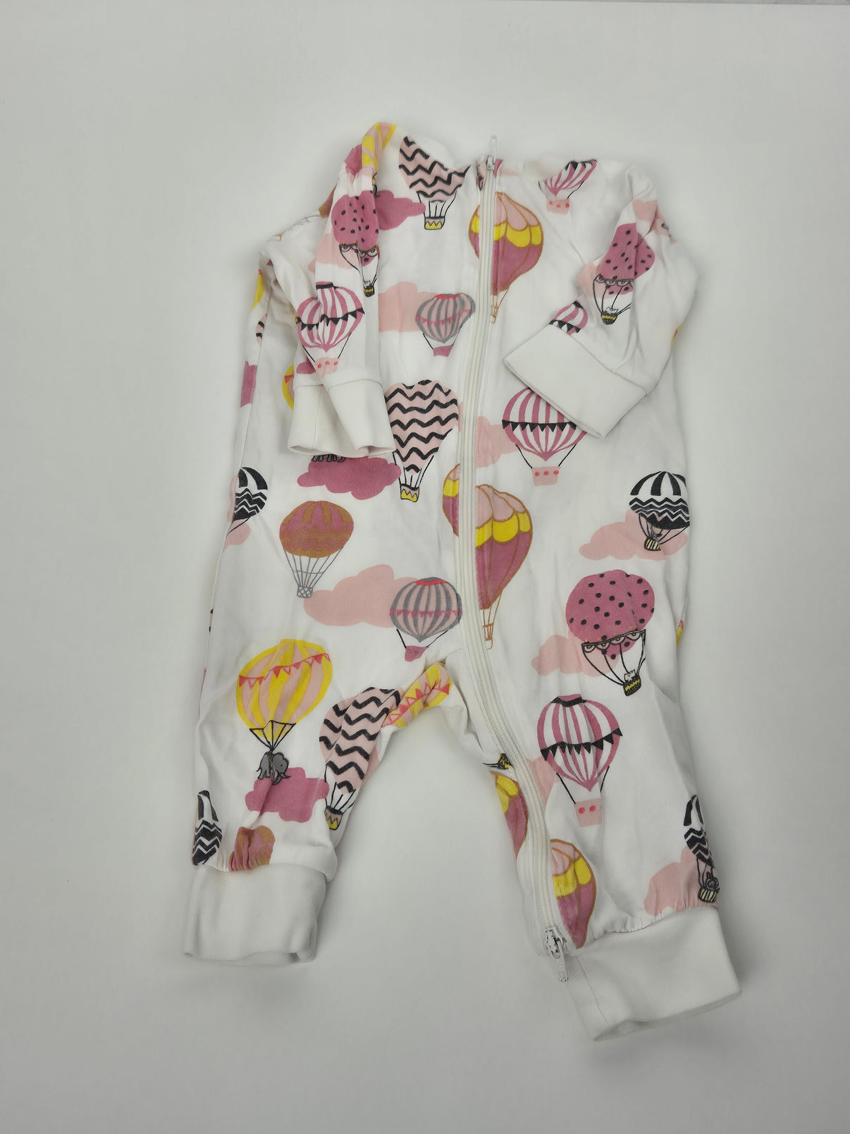 Veselý overal od značky Lindex s motivem horkovzdušných balónů je jako stvořený pro malé snílky a snílkyně. Bílý podklad zdobí barevné balóny v odstínech růžové, žluté, černé a šedé, doplněné obláčky, které dodávají outfitu hravý nádech. Praktický zip po celé délce usnadňuje oblékání i přebalování. Díky měkkému materiálu a pohodlnému střihu se miminko bude cítit příjemně po celý den. Ideální volba pro malé holčičky.
