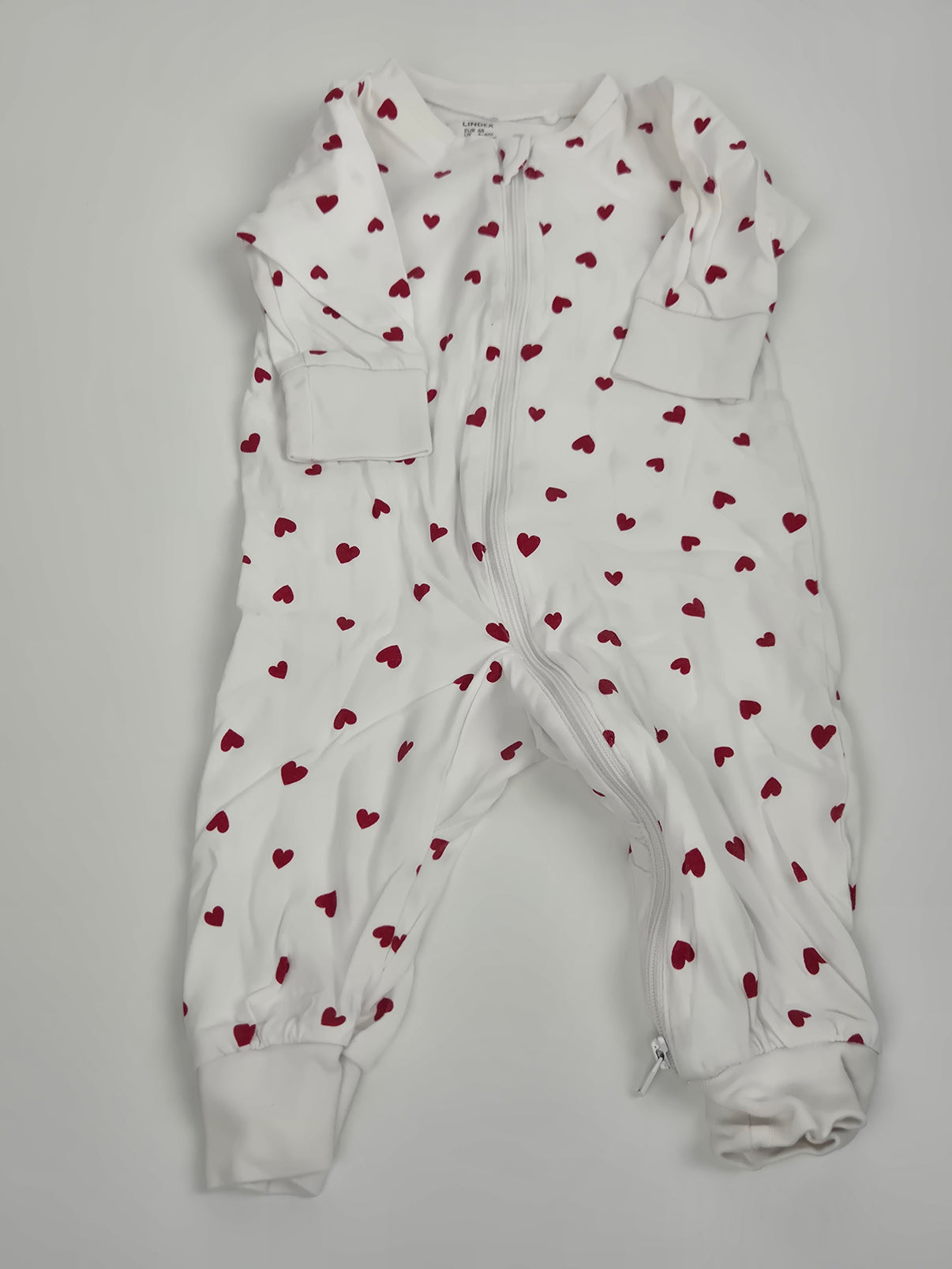 Pohodlný a měkoučký overal Lindex s motivem červených srdíček na bílém podkladu si zamiluje každé miminko i rodič. Roztomilý vzor působí hravě a něžně, ideální na každodenní nošení i sladké spaní. Praktické zapínání na zip po celé délce usnadňuje přebalování, zatímco pružné náplety zajistí, že overal dobře drží na místě.