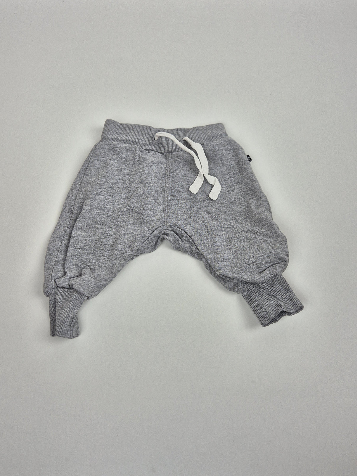 Pohodlné dětské tepláčky v jemně melírované šedé barvě, ideální na doma i na procházky. Měkký pas na gumu se stahovací šňůrkou zajišťuje pohodlné nošení a volnější střih s pružnými náplety...