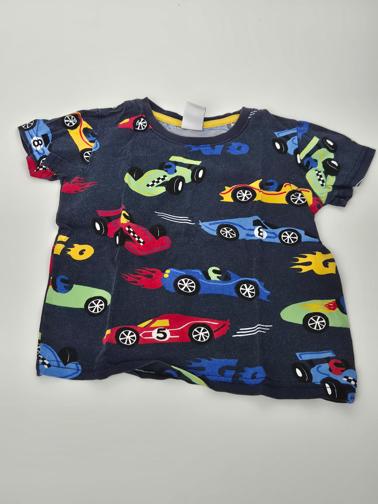 Hravé tričko pro malé závodníky s celoplošným potiskem autíček v pestrých barvách na tmavě modrém podkladu přináší spoustu energie a radosti. Díky barevnému designu se skvěle kombinuje s dalšími kousky v šatníku a rozhodně se neztratí ani na hřišti. Příjemný materiál a pohodlný střih zajišťují komfort po celý den. Ideální pro kluky, kteří milují rychlost, pohyb a dobrodružství. Značka Lindex.