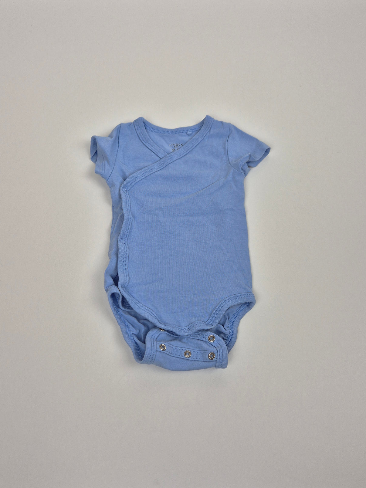 Světle modré kojenecké zavinovací body s krátkým rukávem z kolekce Lindex je praktický a pohodlný kousek pro každodenní nošení. Díky zavinovacímu střihu se snadno obléká i novorozencům, bez nutnosti přetahovat přes hlavičku. Tři patentky mezi nožičkami navíc umožňují prodloužení, takže body poroste chvíli s miminkem. Skvělé pro chlapečky. Značka Lindex.