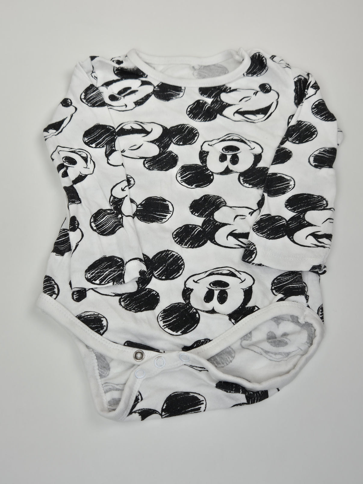 Roztomilé body Sinsay s dlouhým rukávem v bílé barvě s celoplošným černým potiskem Mickey Mouse. Hravý design působí moderně a unisexově, takže je skvělý pro holčičku i chlapečka. Měkký bavlněný materiál je příjemný na nošení a praktické zapínání mezi nožičkami usnadňuje přebalování. Ideální kousek na každodenní pohodlí doma i do školky.