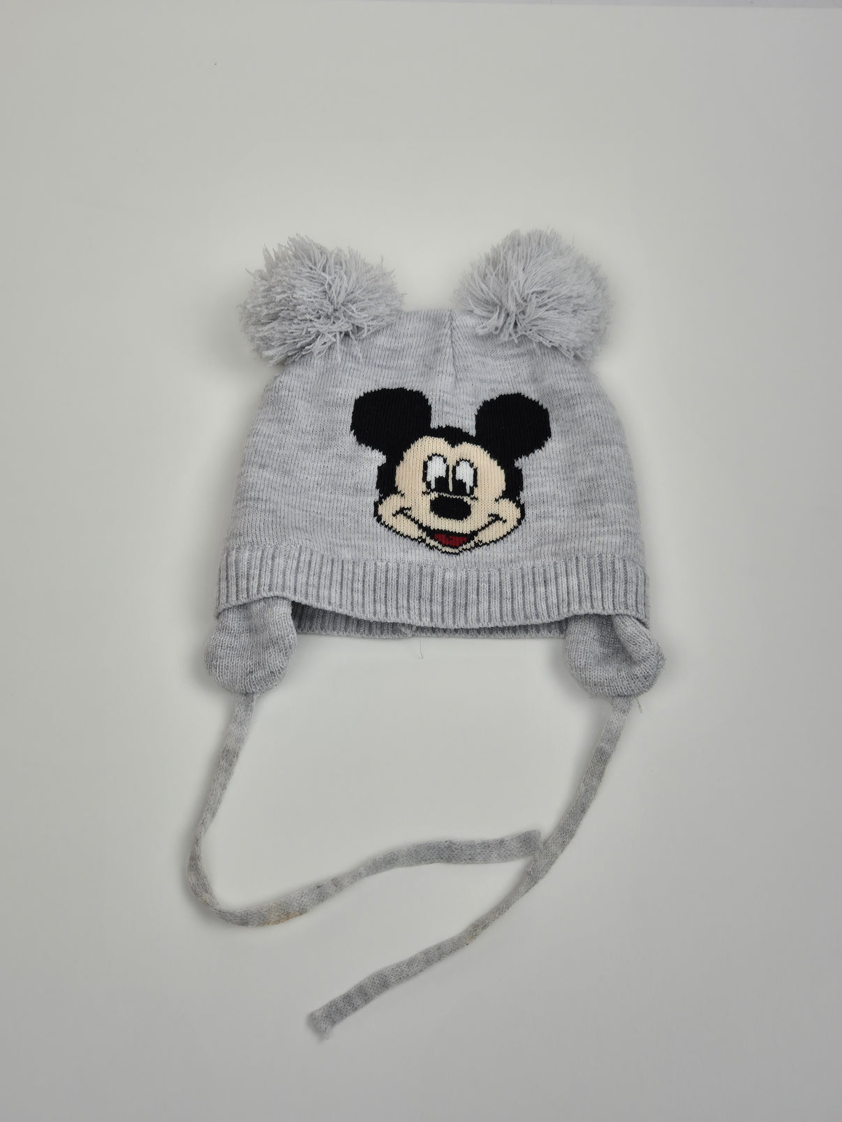 Hřejivá pletená čepice Mickey Mouse z Pepco v neutrálním světle šedém odstínu. Veselý motiv Mickeyho na přední straně a dva bambulky nahoře dodávají čepici hravý, dětský vzhled. Měkký pletený materiál příjemně zahřeje v chladnějších dnech a šňůrky na zavazování pomohou, aby čepice dobře držela na hlavičce. Ideální do kočárku, na procházky i běžné nošení venku.