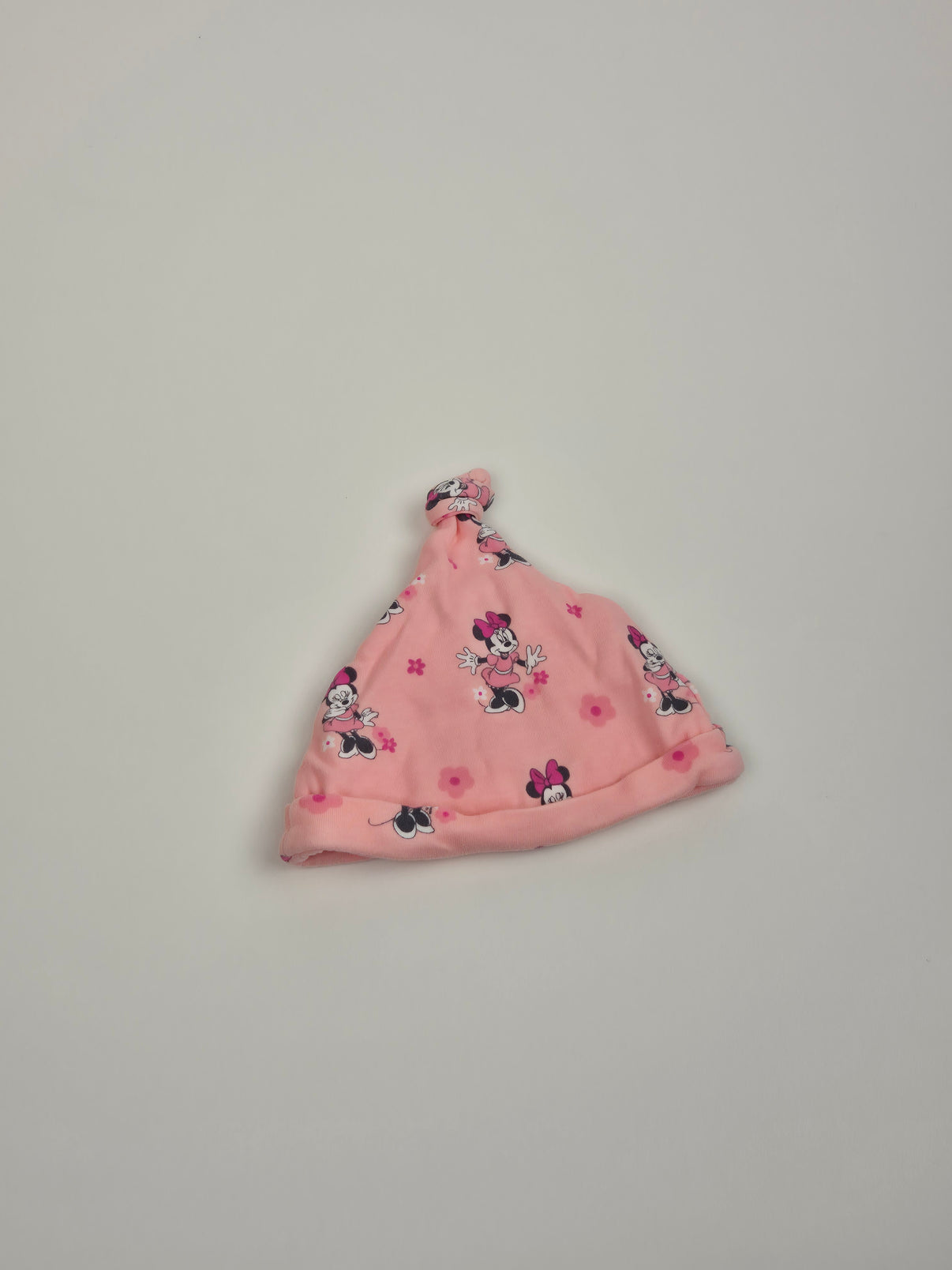 Roztomilá kojenecká čepička v jemném světle růžovém odstínu s motivem Minnie Mouse potěší každou malou parádnici. Měkký bavlněný materiál je příjemný na nošení, dobře se přizpůsobí hlavičce a nikde netlačí. Uzlík na vršku dodává čepičce hravý vzhled a ohrnutý lem pomáhá lépe držet tvar. Skvělá volba na každodenní nošení doma i venku v mírnějším počasí.