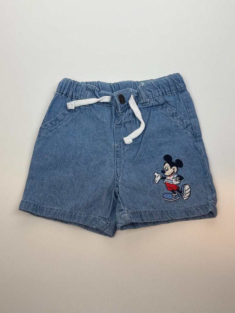 Pohodlné dětské kraťasy značky Pepco v klasickém středně modrém džínovém odstínu. Barva je lehce vyšisovaná, působí přirozeně a velmi dobře se kombinuje s tričky i tílky. Na nohavici je vyšitý motiv Mickey Mouse, který dodává kraťasům hravý a oblíbený dětský prvek, aniž by působil přehnaně výrazně.
