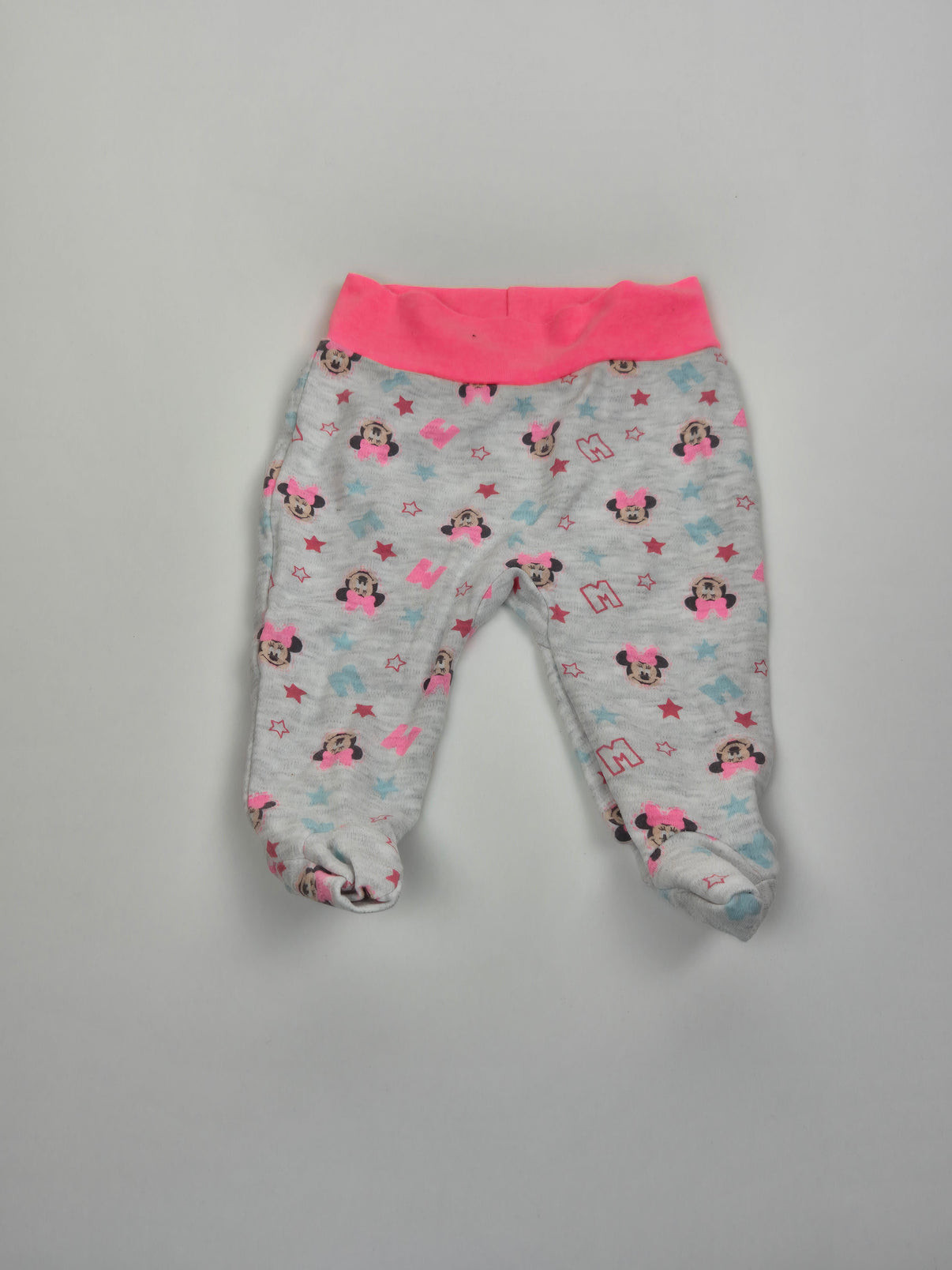 Roztomilé polodupačky v šedém melíru s oblíbeným motivem Minnie Mouse, doplněné o hvězdičky a písmena v růžových a pastelových tónech. Výrazný růžový pas je měkký, pružný a pohodlný na bříško, kryté nožičky zajistí teplo bez nutnosti ponožek. Příjemný bavlněný materiál je vhodný i pro citlivou dětskou pokožku. Ideální kousek na každodenní nošení doma i do kočárku. Vhodné především pro holčičku.