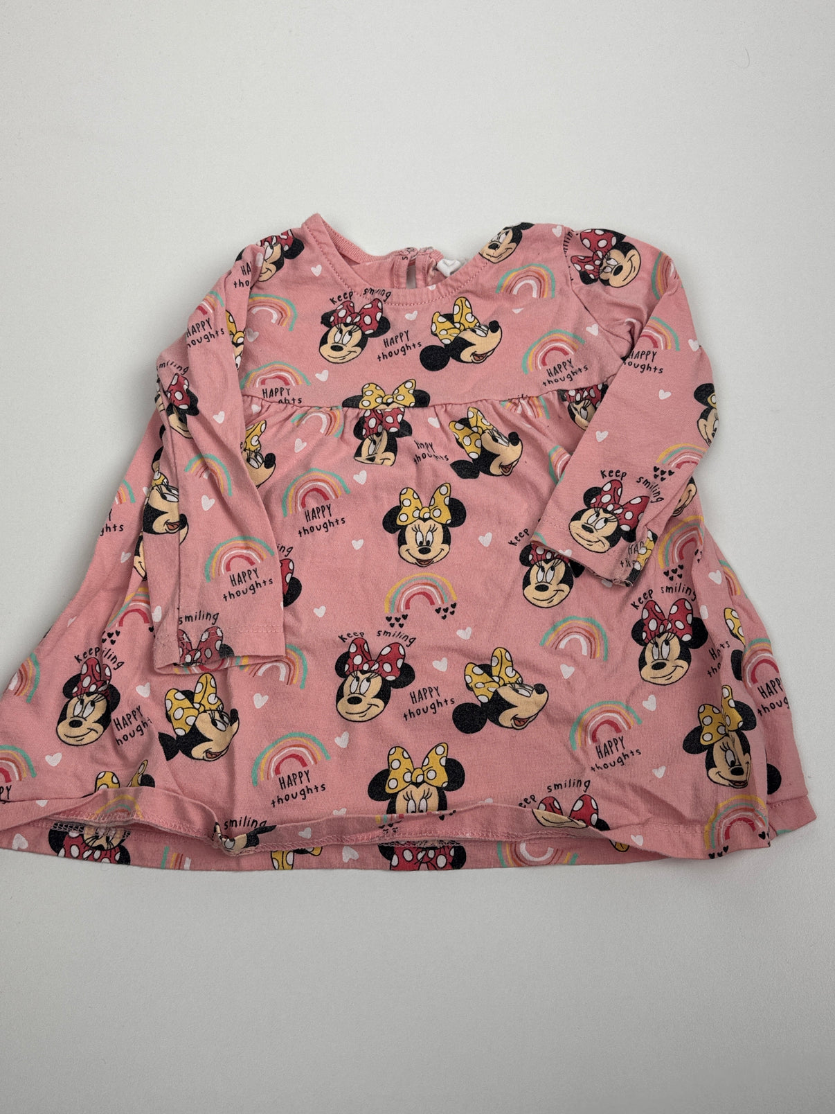 Roztomilé dívčí šatičky v jemném starorůžovém odstínu s celoplošným potiskem Minnie Mouse, duhových obloučků a drobných srdíček. Hravé barevné detaily v kombinaci růžové, žluté a pastelových tónů působí vesele a holčičkovsky. Měkký bavlněný materiál je příjemný na nošení a pohodlný střih s lehce nabíranou sukní umožní volný pohyb při hraní i procházkách. Ideální na běžné nošení, do školky i na slavnostnější chvíle. Určeno pro holčičku.