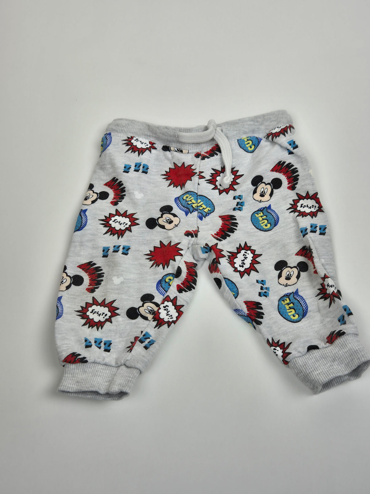 Pohodlné tepláky ve světle šedém melíru s hravým celoplošným potiskem Mickey Mouse v komiksovém stylu. Barevné detaily v červené, modré a černé dodávají kousku veselý výraz. Měkký bavlněný materiál je ideální na každodenní nošení, do kočárku i na domácí dovádění. Pružný pas se šňůrkou a náplety na nohavicích zajistí, že tepláky dobře sedí a nikde netlačí.