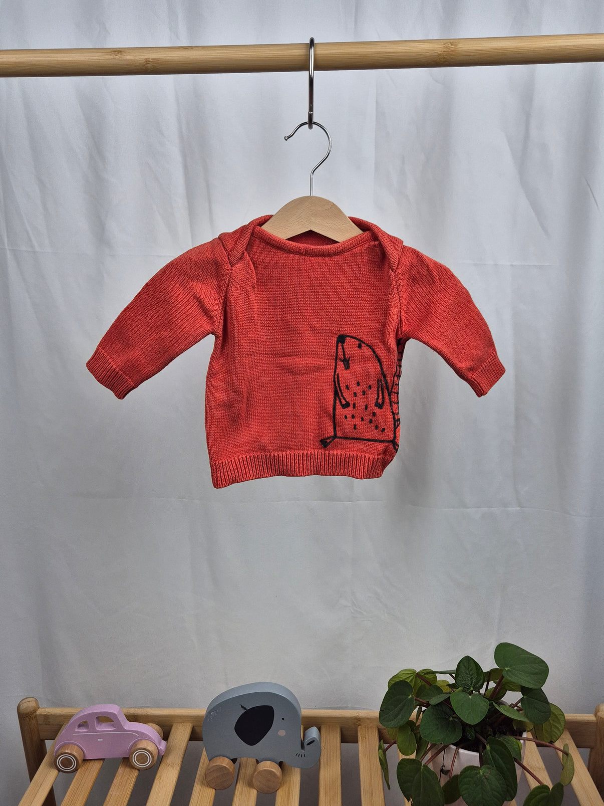 Stylový červený svetr značky Marks & Spencer ve velikosti 68 je ideálním kouskem pro miminka na chladnější dny. Jednoduchý a přitom roztomilý design je oživen černým motivem kočky na přední...