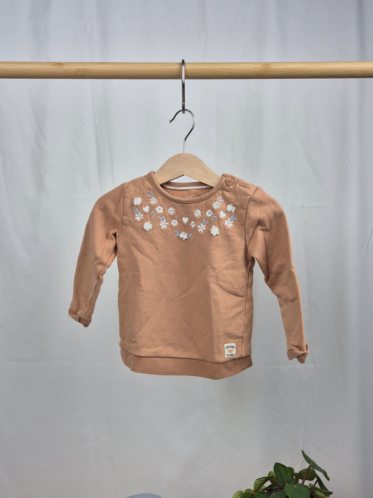 Hnědá mikina s dlouhým rukávem zdobená jemnými výšivkami bílých a světle modrých kytiček přináší do dětského šatníku přírodní kouzlo a pohodlí. Díky praktickému zapínání na rameni se snadno obléká, což ocení rodiče i malé slečny. Měkký a příjemný materiál zajišťuje maximální komfort při nošení, ať už na procházce v přírodě nebo při hrátkách doma. Univerzální kousek, který snadno sladíš s kalhotami i sukní a hodí se na každodenní nošení.