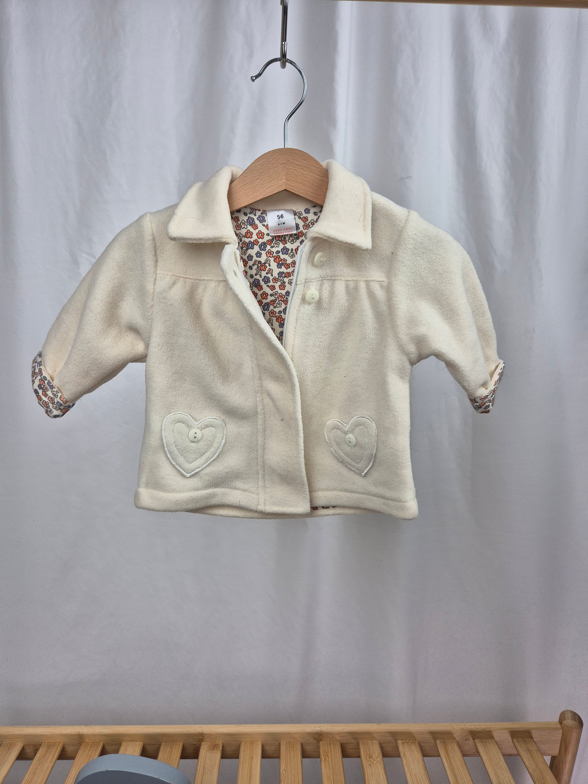 Roztomilý krémový kabátek Jacky ve velikosti 56 je jemný, hebký a ideální pro nejmenší miminko. Má měkoučký fleecový materiál, květinovou podšívku a krásné detaily – od límečku až po srdíčkové...