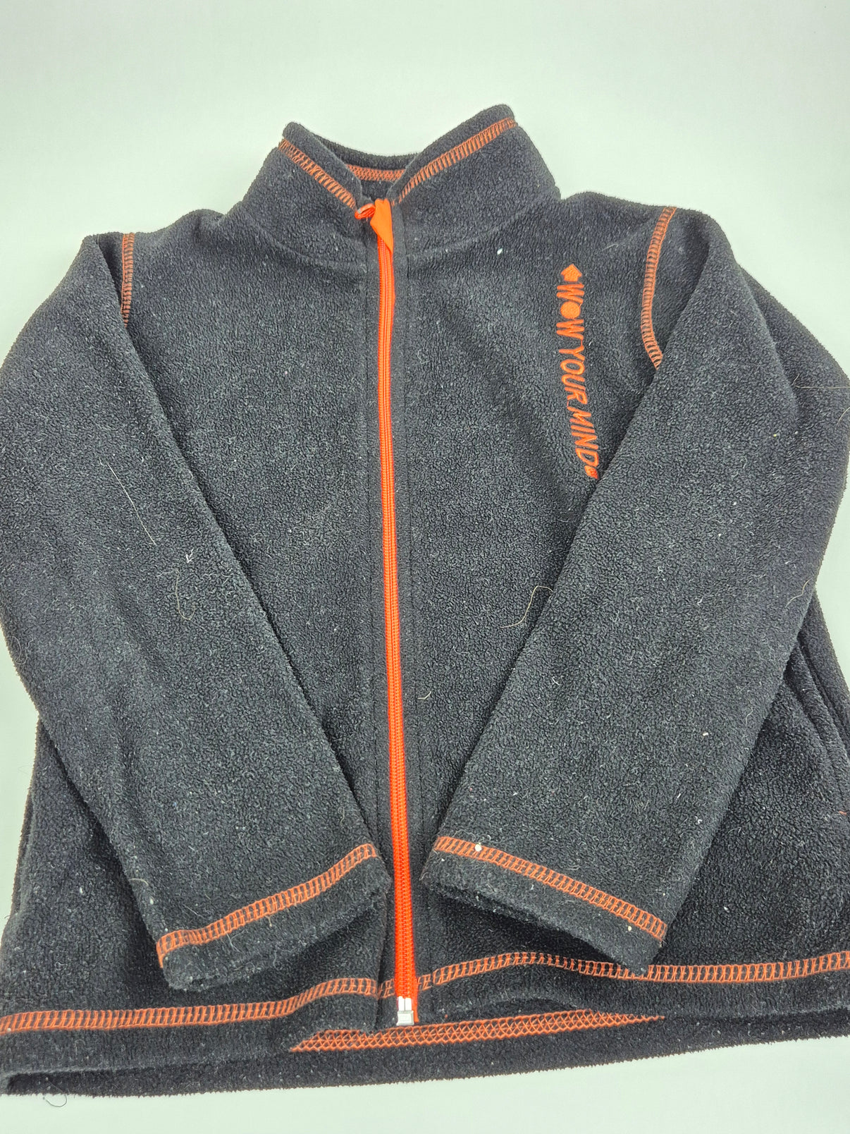 Černá fleecová mikina Lupilu s výraznými oranžovými detaily je skvělým kouskem na chladnější dny – lehká, hřejivá a pohodlná na celodenní nošení. Má zip po celé délce, stojáček na zahřátí...
