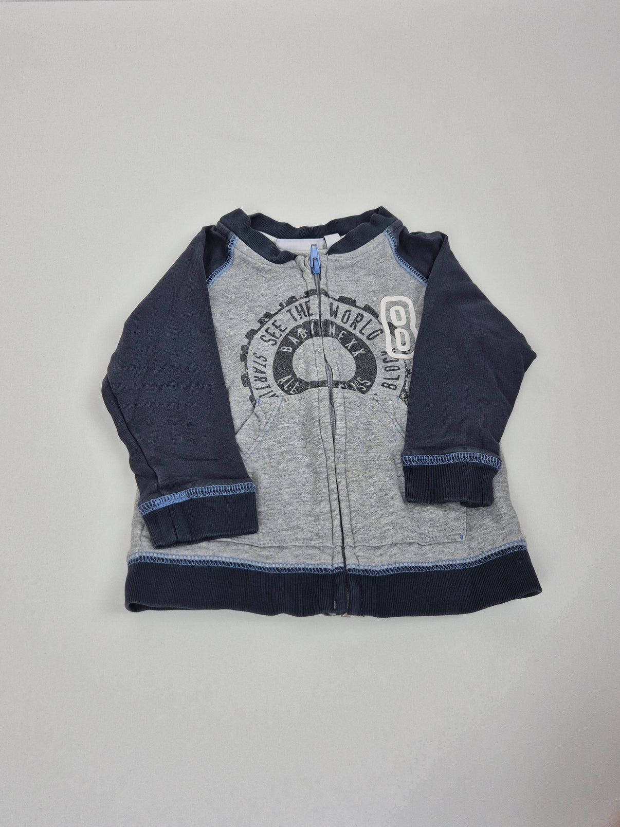 Pohodlná dětská mikina značky Mexx v kombinaci šedé a tmavě modré barvy. Stylový sportovní design s potiskem a praktickým zipem po celé délce. Mikina je vyrobena z měkké bavlny, která zaručí komfort i volnost pohybu při hraní nebo procházkách.