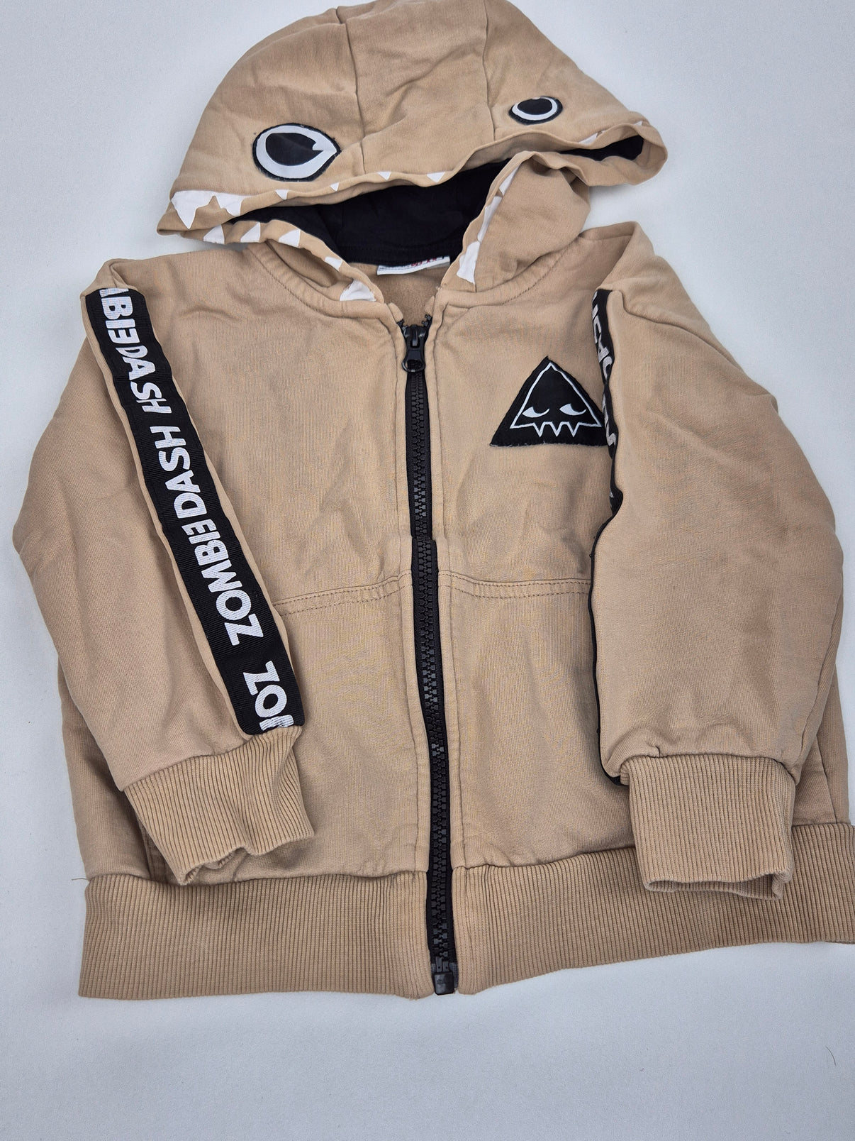 Béžová mikina Pepco se zapínáním na zip a kapucí s hravým „monster“ motivem – velká očička a zubatý lem dodají kousku zábavný vzhled, který děti milují. Na rukávech je kontrastní potisk a na hrudi malá aplikace. Měkký materiál, praktické náplety a pohodlný střih dělají z mikiny super volbu na každý den. Ideální pro kluka.