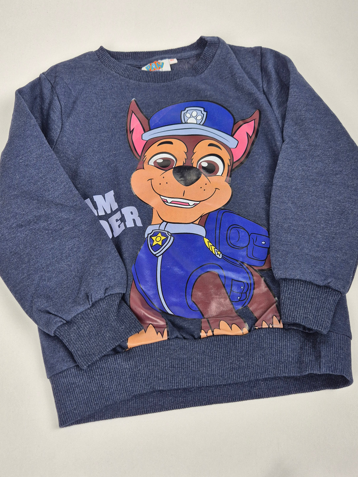 Tmavě modrá mikina ve velikosti 122 s potiskem oblíbené postavičky Chase z Tlapkové patroly. Má pružné manžety na rukávech i spodním lemu, díky čemuž dobře sedí a je pohodlná na...