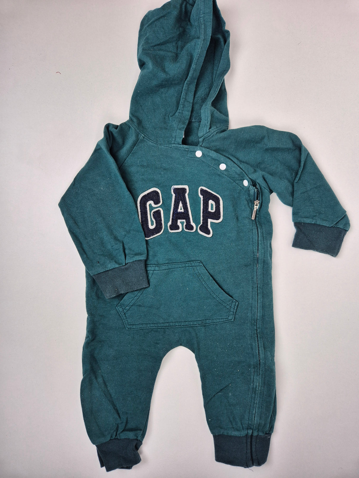 Měkoučký mikinový overal GAP v nádherném petrolejově zeleném odstínu – ideální pro miminko nebo batole na chladnější dny. Overal má praktickou kapuci, dlouhé rukávy i nohavice s pružnými lemy a šikmý zip pro snadné oblékání. Na přední straně je ikonické vyšívané logo GAP, které dodává celému kousku stylový sportovní vzhled. Pohodlný, hřejivý a skvělý na doma, do kočárku i na výlety.