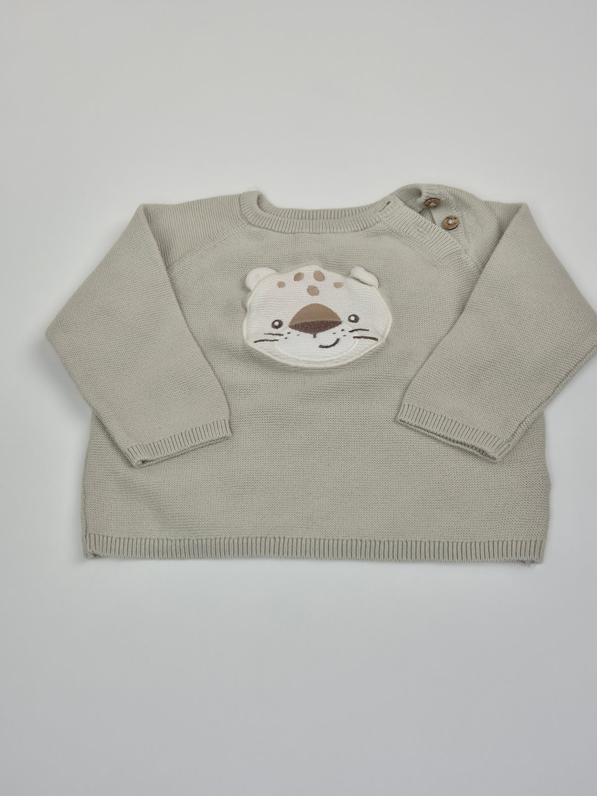Hebký béžový svetr C&A ve velikosti 74 je krásně univerzální kousek s něžným motivem zvířátka na hrudi. Pletenina je měkká, příjemná na dotek a ideální pro chladnější dny. Na rameni jsou dva knoflíčky, které usnadní oblékání přes hlavičku. Díky neutrální barvě se hodí jak pro holčičku, tak pro chlapečka a skvěle doplní legíny, tepláčky i džíny.