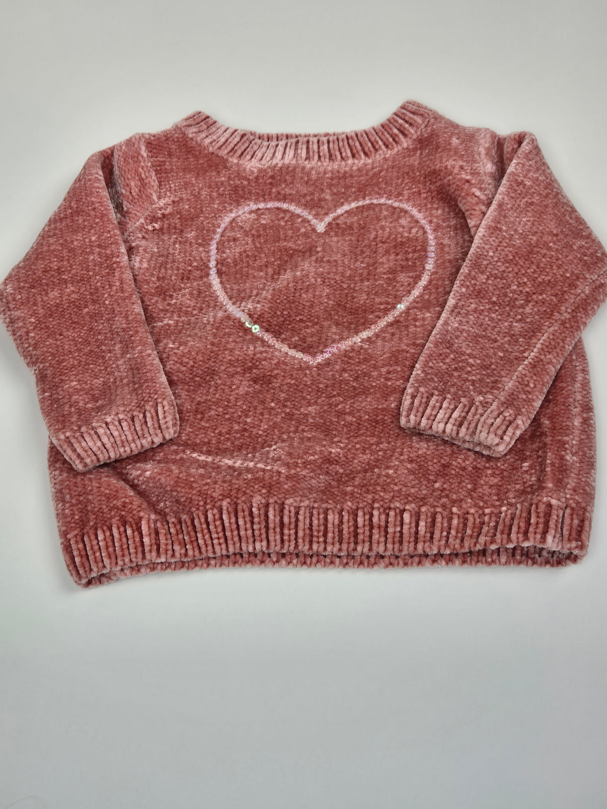 Měkoučký růžový svetr Palomino (C&A) ve velikosti 92 je krásný a příjemný kousek pro malou holčičku. Je vyrobený z hebké chlupaté příze, která je hřejivá a velmi příjemná na nošení. Uprostřed má velké srdíčko vytvořené jemnou třpytivou nití a drobnými flitry, což dodává svetru jemně slavnostní a roztomilý vzhled.