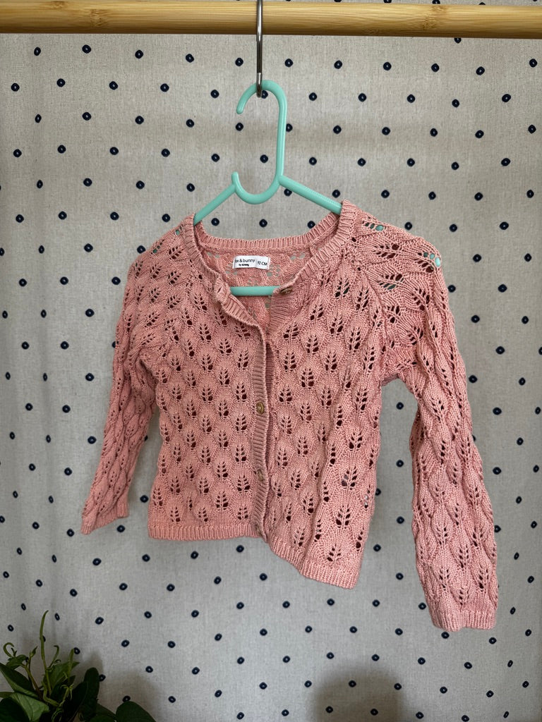 Roztomilý dívčí svetr s knoflíčky od značky Sinsay ve velikosti 92. Tento nádherný růžový svetr je pletený s krásným vzorem listů, který dodává oblečení elegantní a jemný vzhled. Svetr má...