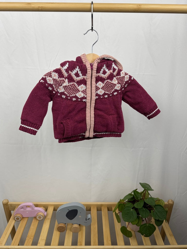 Hřejivý dětský svetr s podšívkou od značky Bonprix je ideální volbou pro chladnější dny. Sytá vínová barva je doplněna jemným nordickým vzorem v růžových a bílých tónech, který dodává svetru kouzelný zimní vzhled. Svetr má praktickou kapuci s měkkou podšívkou, která udrží hlavičku v teple. Zapínání na zip usnadňuje oblékání, zatímco žebrované lemy zajišťují, že svetr dobře sedí a nepropouští chlad. Ideální kousek na procházky, zimní radovánky nebo jako vrchní vrstva v přechodném období. Pohodlný, stylový a funkční!