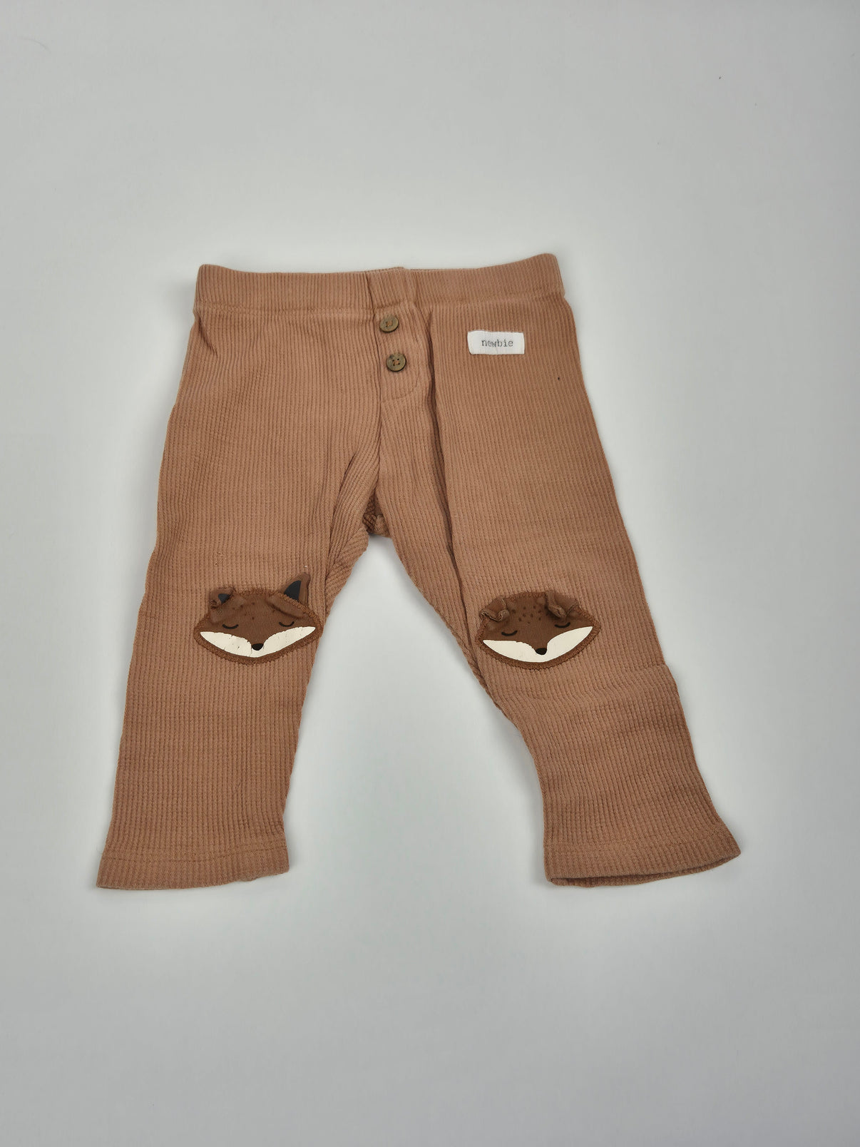 Pohodlné legínky značky Newbie v teplém světle hnědém odstínu si zamiluje každé miminko. Díky měkkému žebrovanému materiálu krásně sedí a neomezují v pohybu, což je ideální na hraní i lenošení doma. Roztomilý detail v podobě spících lištiček na kolínkách dodává legínám hravý nádech a extra roztomilost. Dva dřevěné knoflíčky a decentní nášivka loga Newbie na přední straně pak podtrhují jejich jemný přírodní styl. Skvělý unisex kousek do každého dětského šatníku.