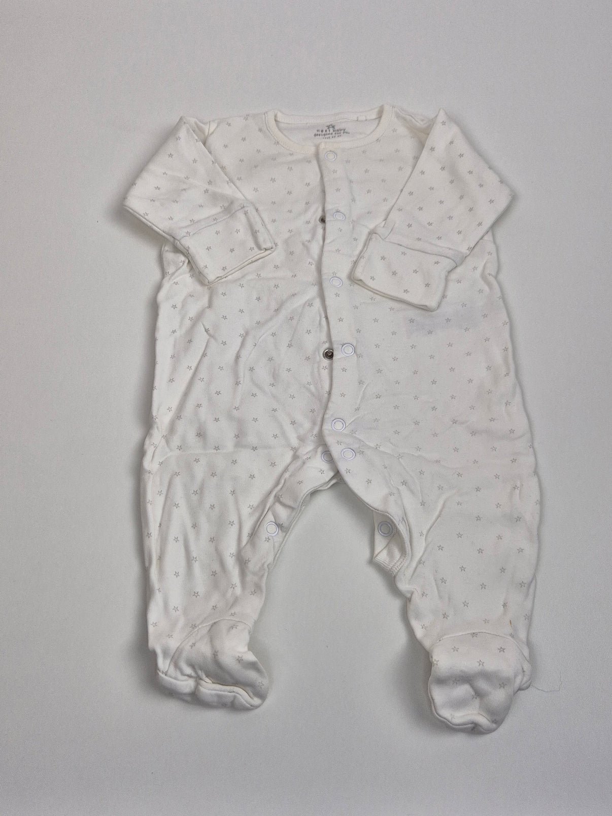 Jemné bílé dupačky s drobným celoplošným vzorem hvězdiček působí velmi čistě a nadčasově. Světlý krémový odstín v kombinaci s nenápadným šedým potiskem je ideální pro miminko od prvních týdnů a snadno se kombinuje s dalšími kousky výbavičky. Měkký bavlněný materiál je příjemný na dotek a vhodný na spaní i celodenní nošení. Praktické zapínání na patentky po celé délce i mezi nožičkami usnadní přebalování, uzavřené nožičky zajistí miminku teplo a pohodlí. Neutrální provedení je vhodné jak pro holčičku, tak pro kluka.
