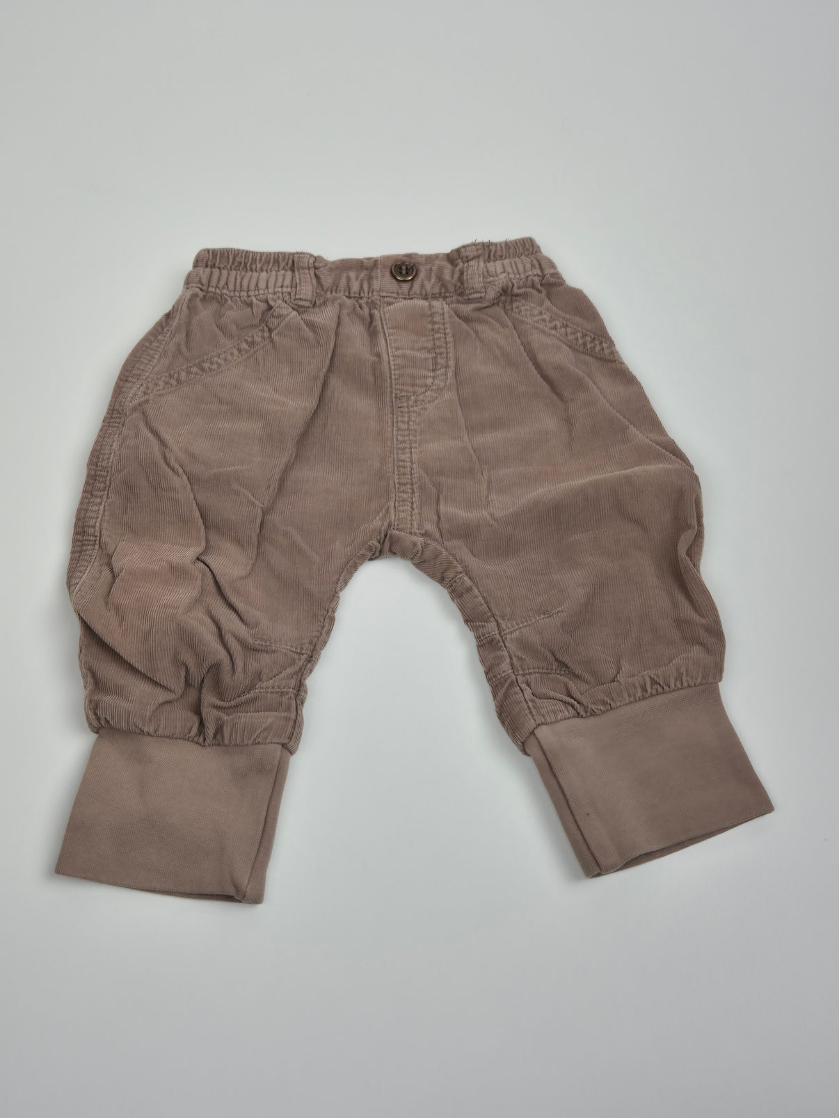 Měkký manšestr je příjemný na dotek, elastický pas se dobře přizpůsobí bříšku a dlouhé náplety na nohavicích umožní ohrnutí a delší využití. Praktické kapsy vzadu dodávají kalhotám stylový detail. Díky univerzálnímu vzhledu jsou vhodné pro holčičku i chlapečka.